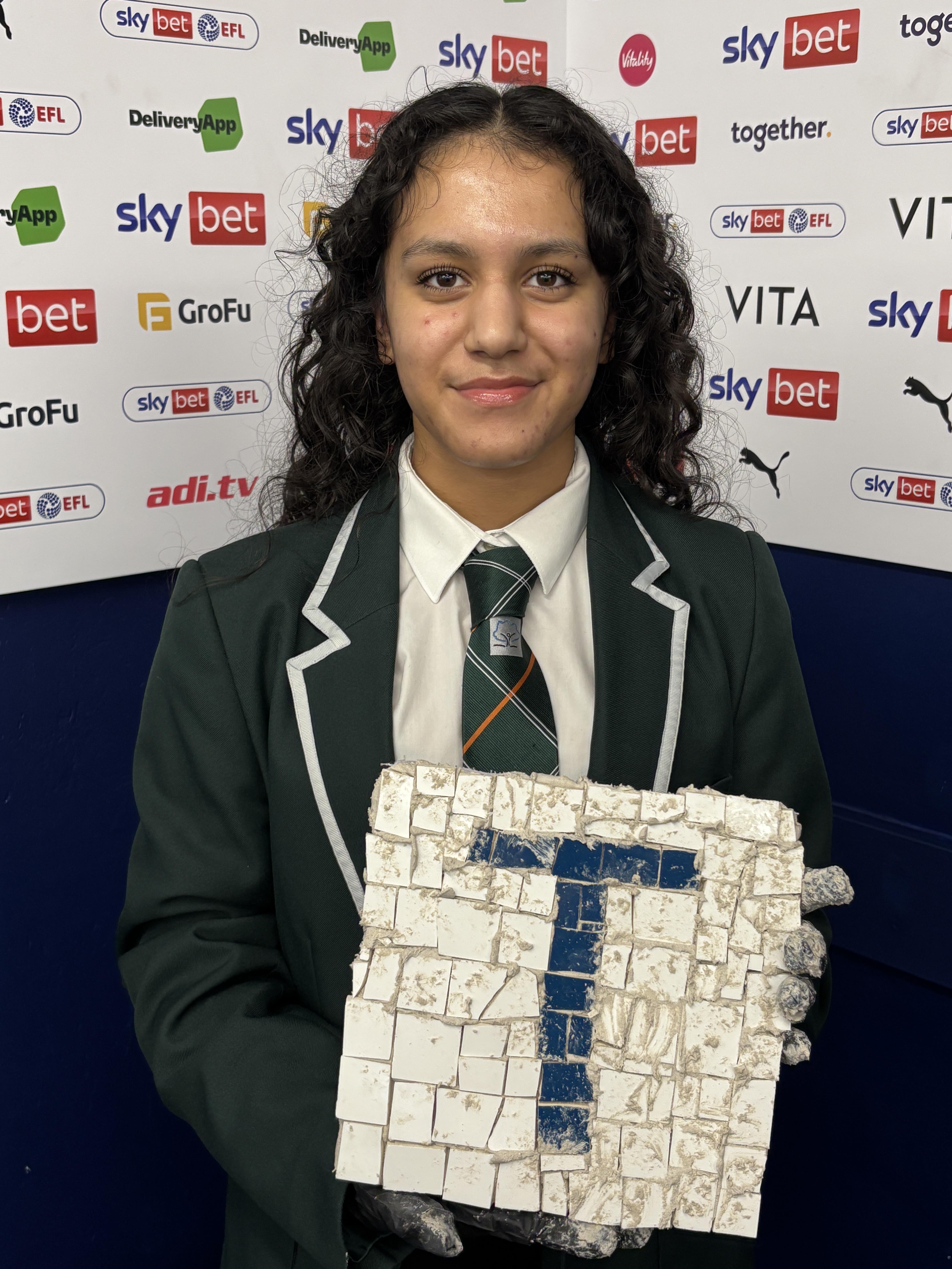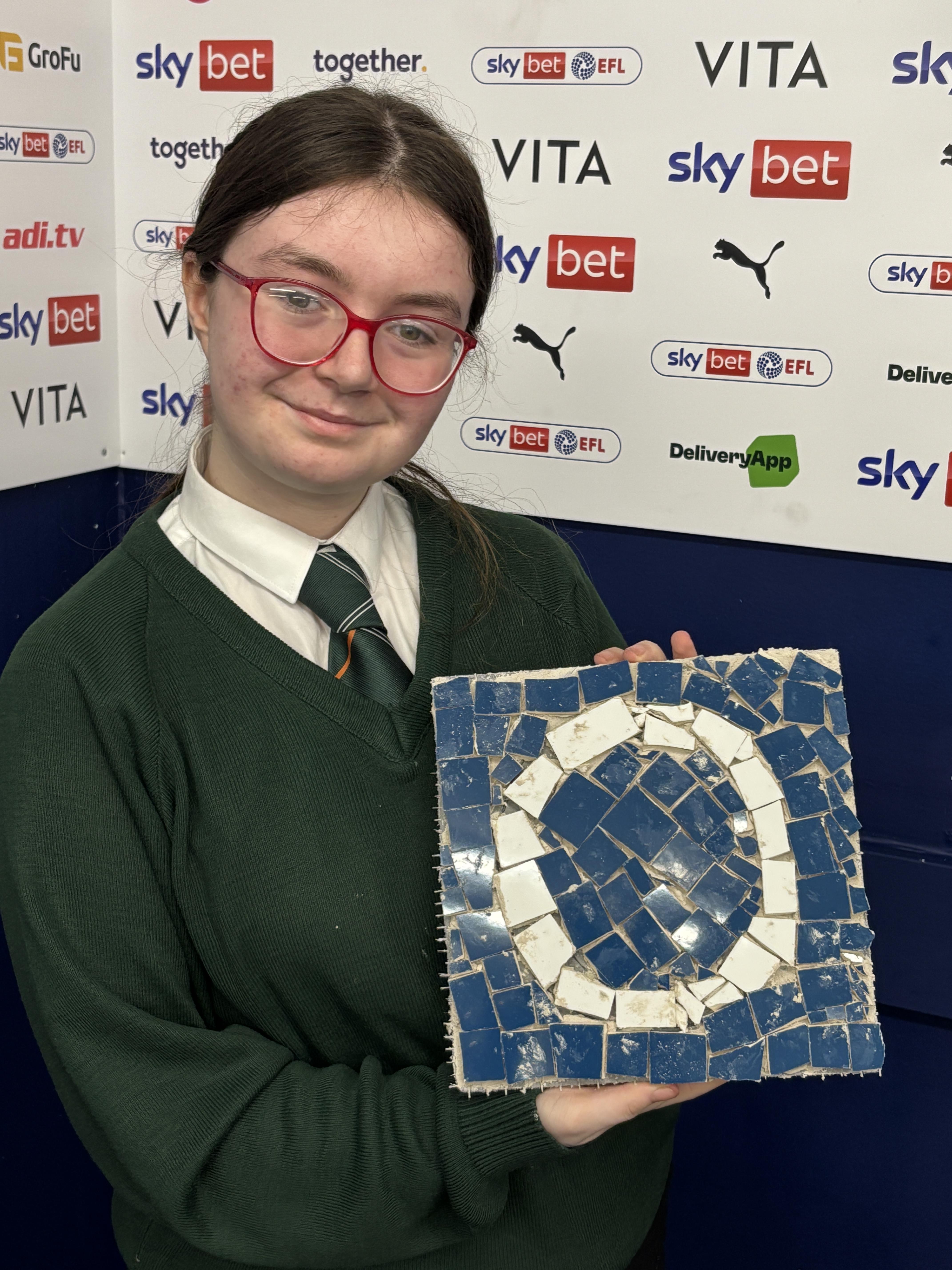 After a brief lunch break, the focus shifted to mosaic tile making. Arranged by GRIT Studios under the guidance of Manchester mosaic artist Francis Thorrington, the students learned how to design and assemble their own mosaics, using tiles in Stockport County’s iconic blue and white colours. The finished artwork will be displayed in a trail throughout Edgeley and Alexandra Park, ending at Edgeley Park stadium, as a testament to the students’ creativity and hard work.